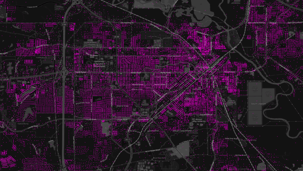 In Mississippi, there are 82 counties, and only 25 of them have their own address points. So we have to take each of those county’s datasets and pull them together. But we don’t just want to cover 25 counties, we want to cover all of them.