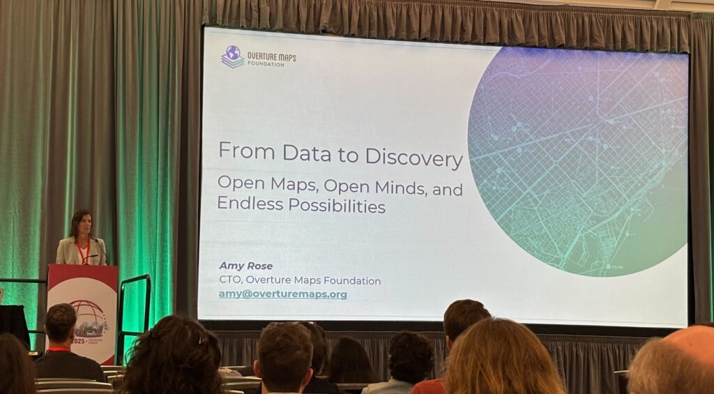 This sustained presence has paid off. We’ve moved from explaining what Overture is to fielding questions about implementation details. Industry leaders now cite us in discussions about spatial data infrastructure. And increasingly, we’re invited to lead panels, deliver keynotes, and host workshops.