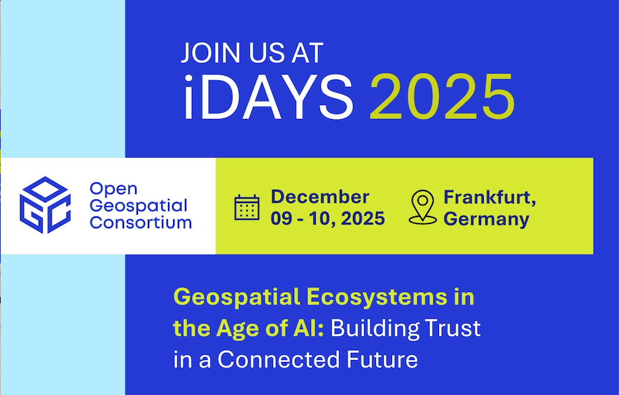 OGC iDays 2025, which takes place on December 9-10 in Bad Nauheim, Germany, will bring together 250 leaders to advance trusted, interoperable, and sovereign geospatial infrastructures through open dialogue and collaboration.Confirmed participants include NATO, the European Commission, Google, Hexagon, Esri, Nvidia, Trimble, Fraunhofer Institute, the City of Rotterdam, NRCan, TNFD and National Mapping Agencies from across Europe and beyond, among many more.